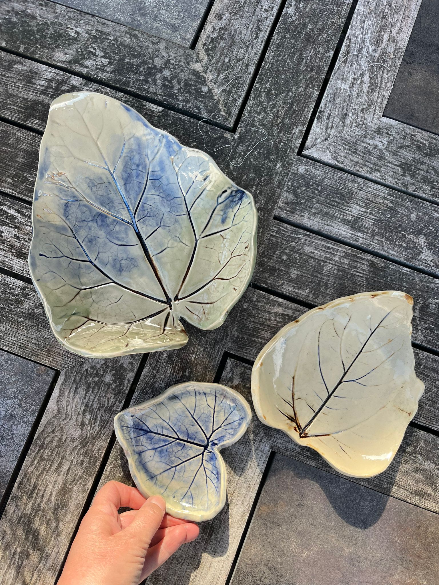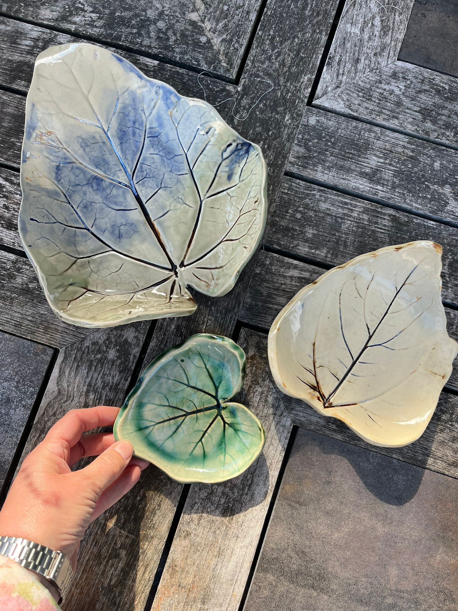 Breng de natuur in huis met drie betoverende bladschalen van keramiek – maak, glazuur, bewonder.